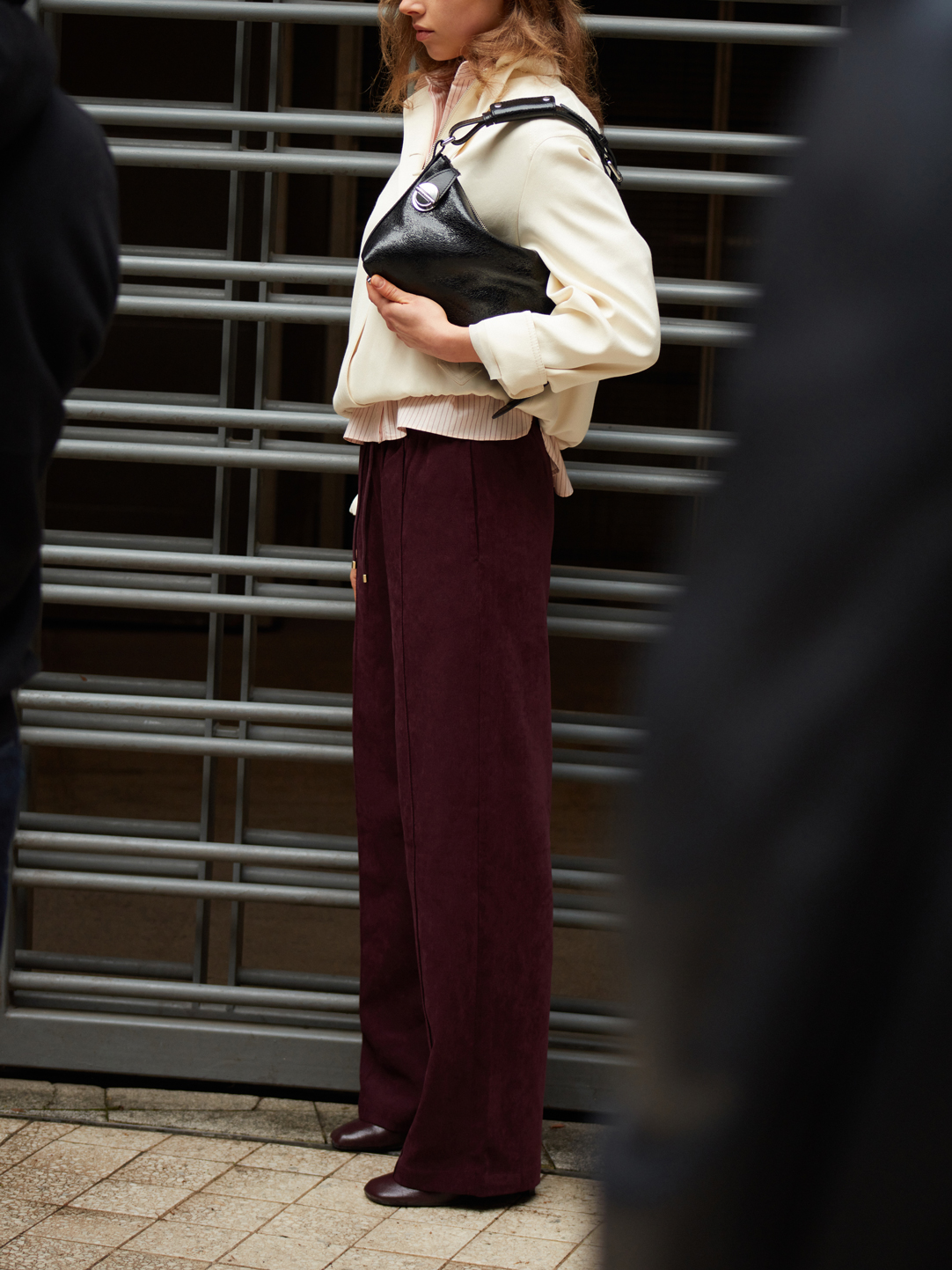 De soepele silhouet wordt versterkt door strakke lijnen, een verstelbare schouderriem en een kenmerkende, veilige ritssluiting.