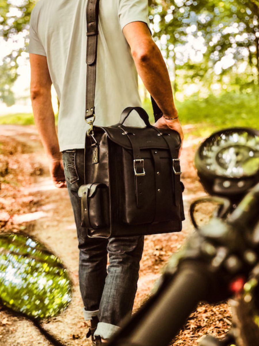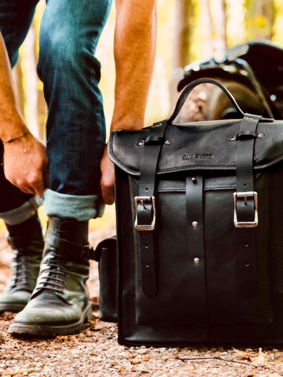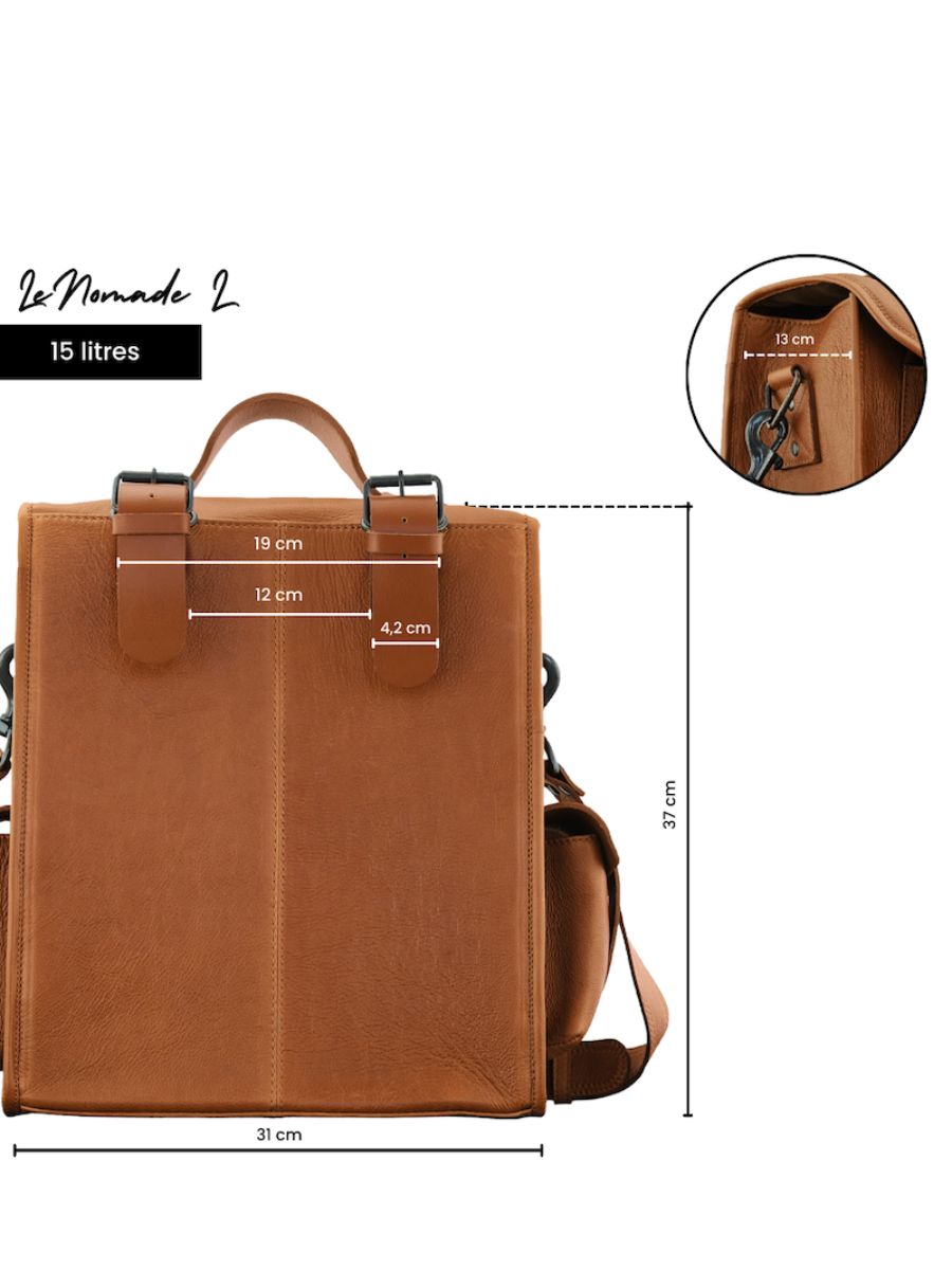De Nomade L is een grote motortas van geolied rundleder voor een betere weerbestendigheid.