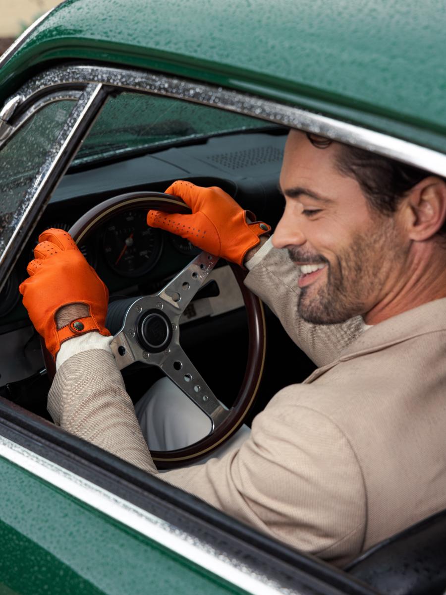 ORANJE LEREN HANDSCHOENEN HEREN Pilot herenhandschoenen - Oranje / Naturel